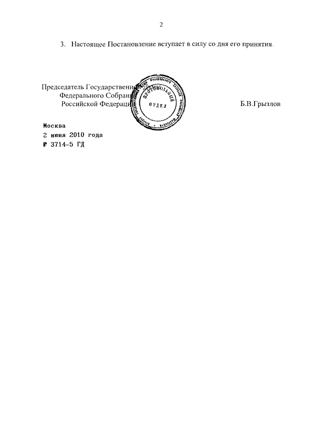 ПОСТАНОВЛЕНИЕ ГД ФС РФ от 02.06.2010 N 3714-5 ГД