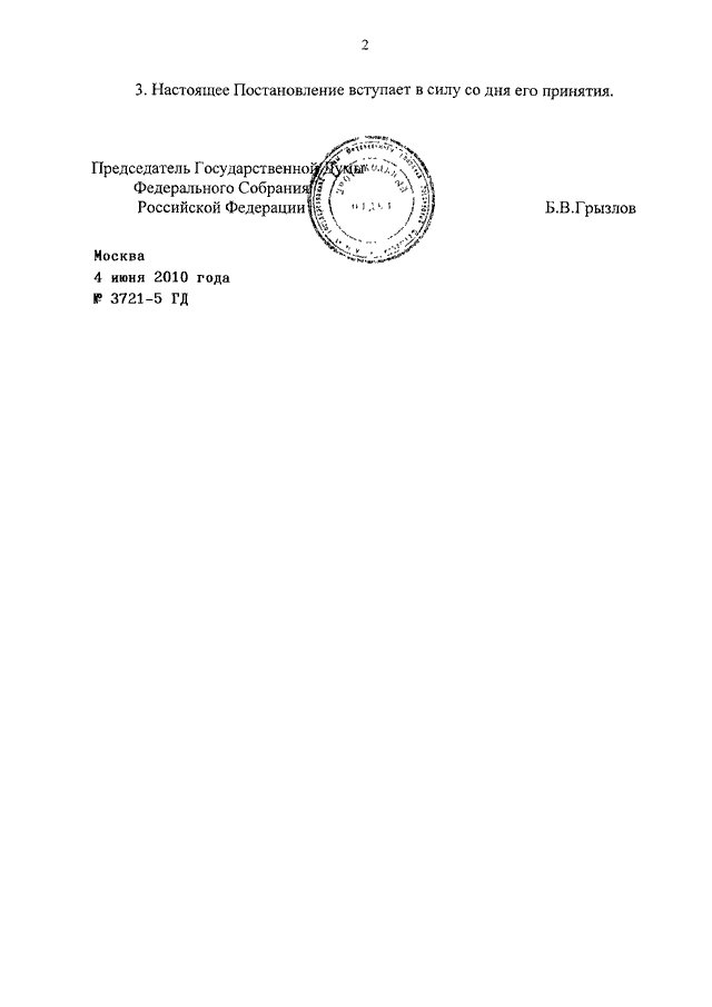 ПОСТАНОВЛЕНИЕ ГД ФС РФ от 04.06.2010 N 3721-5 ГД