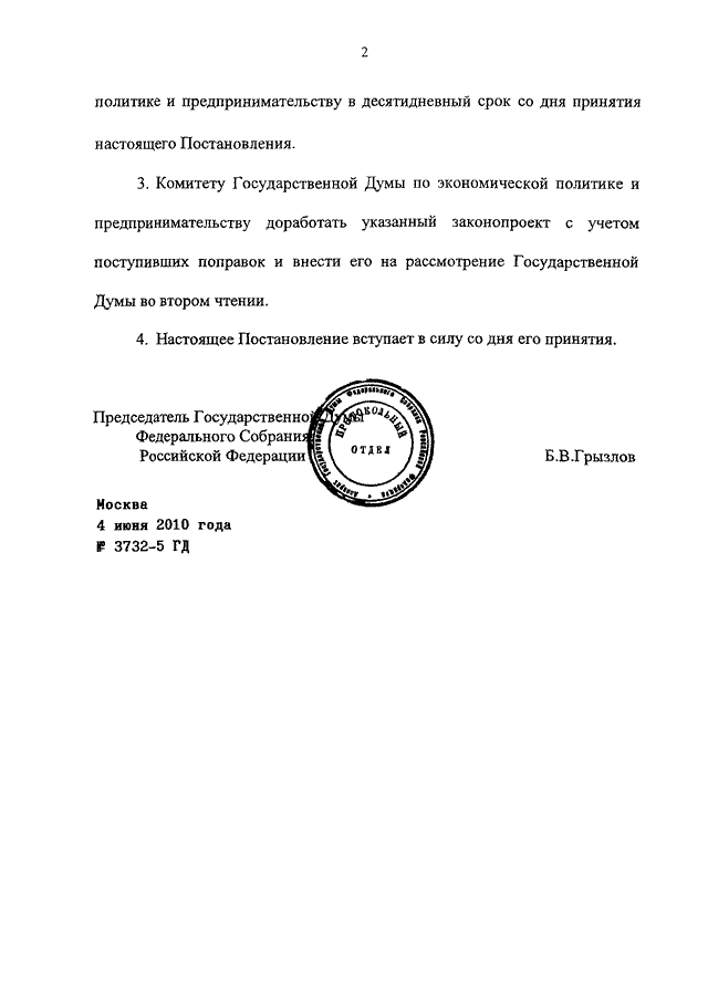 ПОСТАНОВЛЕНИЕ ГД ФС РФ от 04.06.2010 N 3732-5 ГД