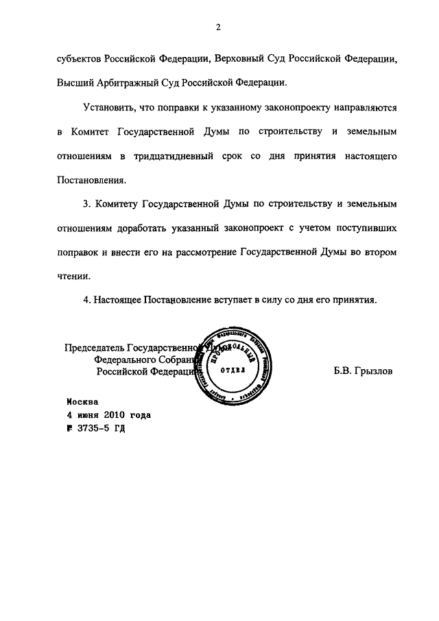 ПОСТАНОВЛЕНИЕ ГД ФС РФ от 04.06.2010 N 3735-5 ГД
