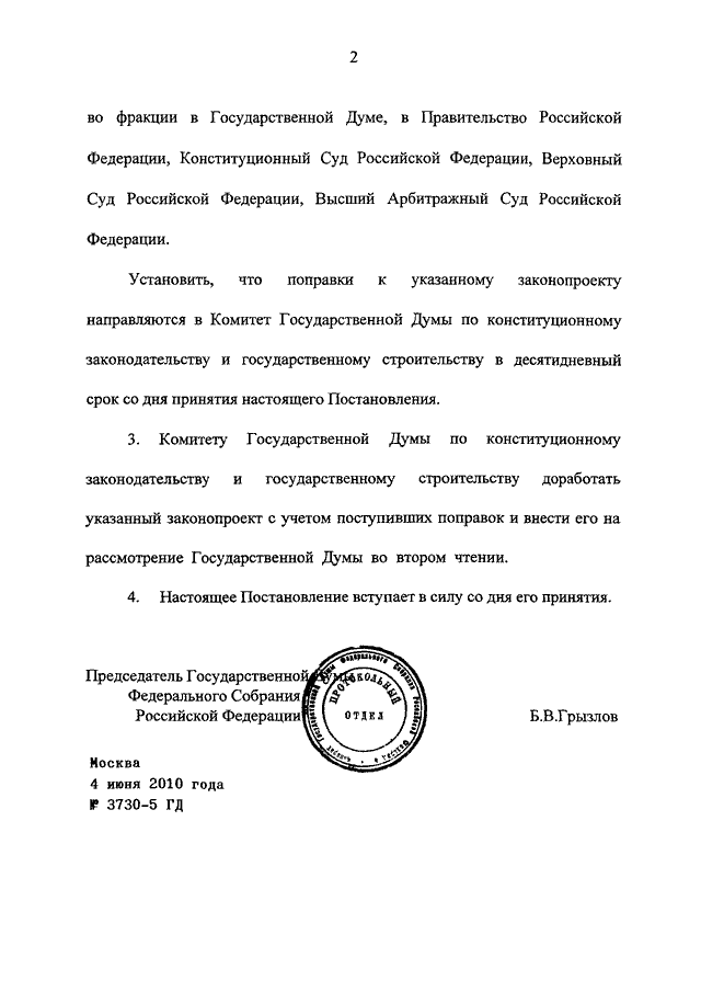 ПОСТАНОВЛЕНИЕ ГД ФС РФ от 04.06.2010 N 3730-5 ГД