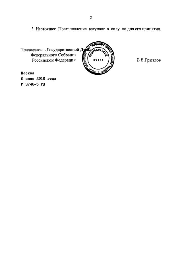 ПОСТАНОВЛЕНИЕ ГД ФС РФ от 09.06.2010 N 3746-5 ГД