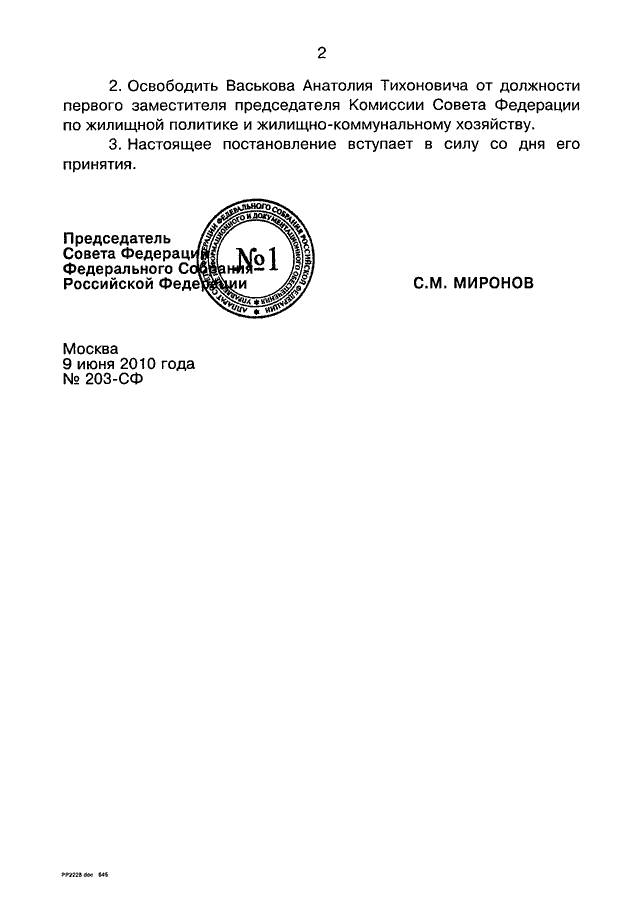 ПОСТАНОВЛЕНИЕ СФ ФС РФ от 09.06.2010 N 203-СФ
