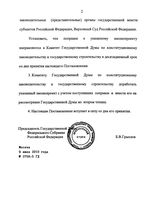 ПОСТАНОВЛЕНИЕ ГД ФС РФ от 09.06.2010 N 3758-5 ГД