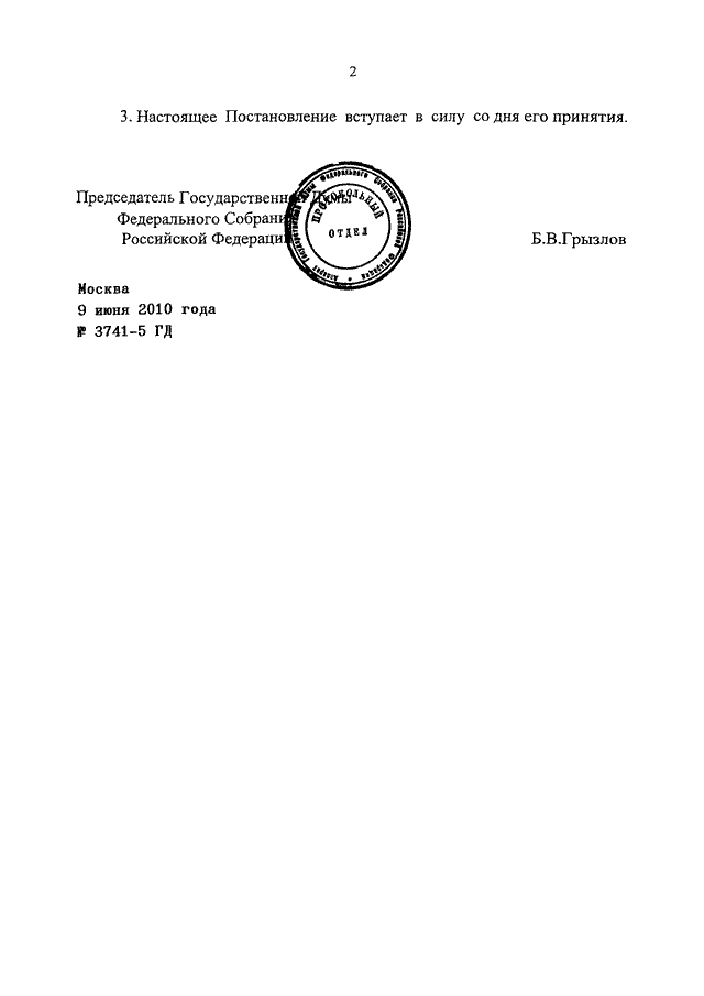 ПОСТАНОВЛЕНИЕ ГД ФС РФ от 09.06.2010 N 3741-5 ГД
