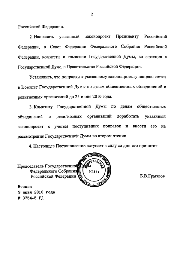 ПОСТАНОВЛЕНИЕ ГД ФС РФ от 09.06.2010 N 3754-5 ГД