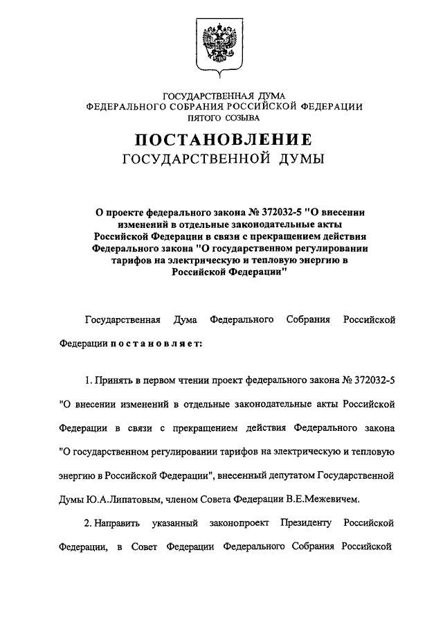 "О ПРОЕКТЕ ФЕДЕРАЛЬНОГО ЗАКОНА N 372032-5 "О ВНЕСЕНИИ ИЗМЕНЕНИЙ В