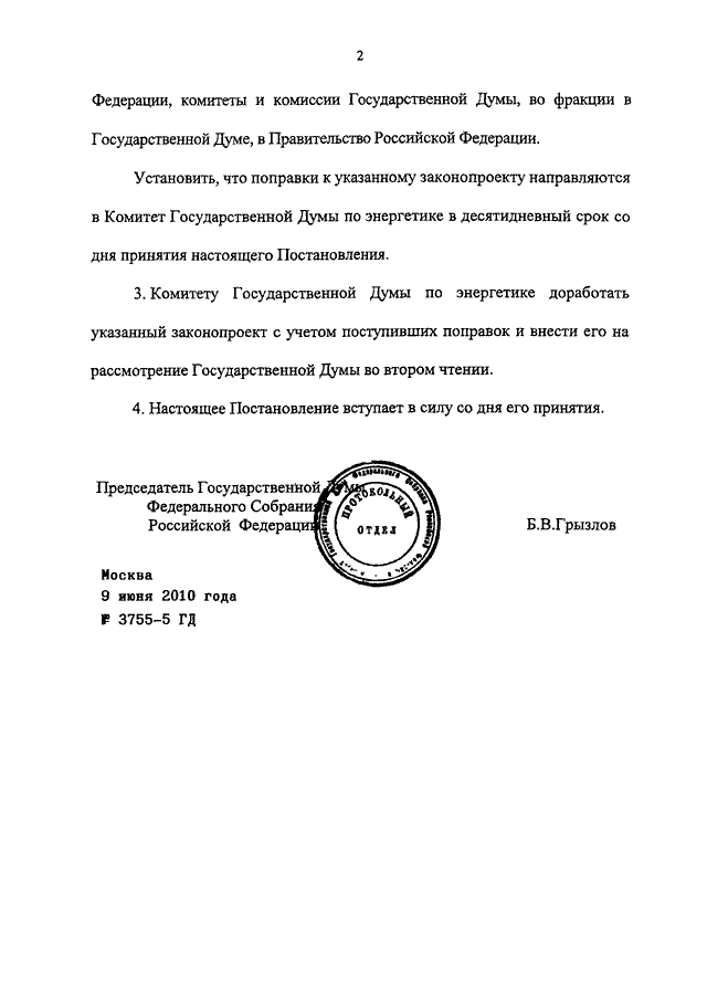 ПОСТАНОВЛЕНИЕ ГД ФС РФ от 09.06.2010 N 3755-5 ГД