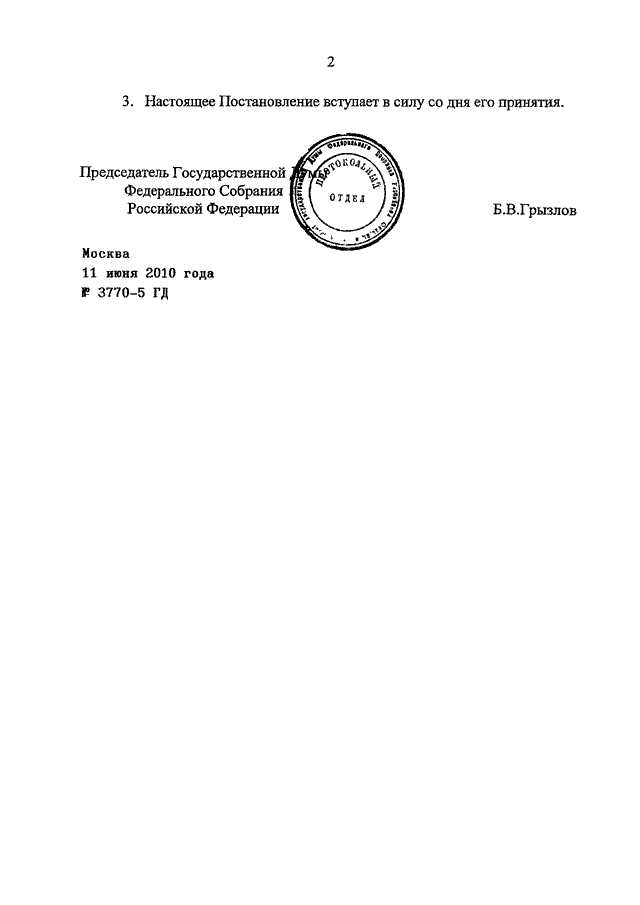ПОСТАНОВЛЕНИЕ ГД ФС РФ от 11.06.2010 N 3770-5 ГД