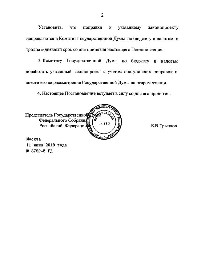 ПОСТАНОВЛЕНИЕ ГД ФС РФ от 11.06.2010 N 3782-5 ГД