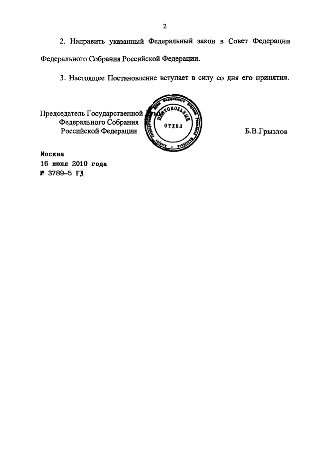 ПОСТАНОВЛЕНИЕ ГД ФС РФ от 16.06.2010 N 3789-5 ГД