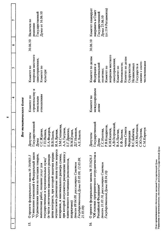 "О КАЛЕНДАРЕ РАССМОТРЕНИЯ ВОПРОСОВ ГОСУДАРСТВЕННОЙ ДУМОЙ С 30 ИЮНЯ ПО 9 ИЮЛЯ 2010 ГОДА"