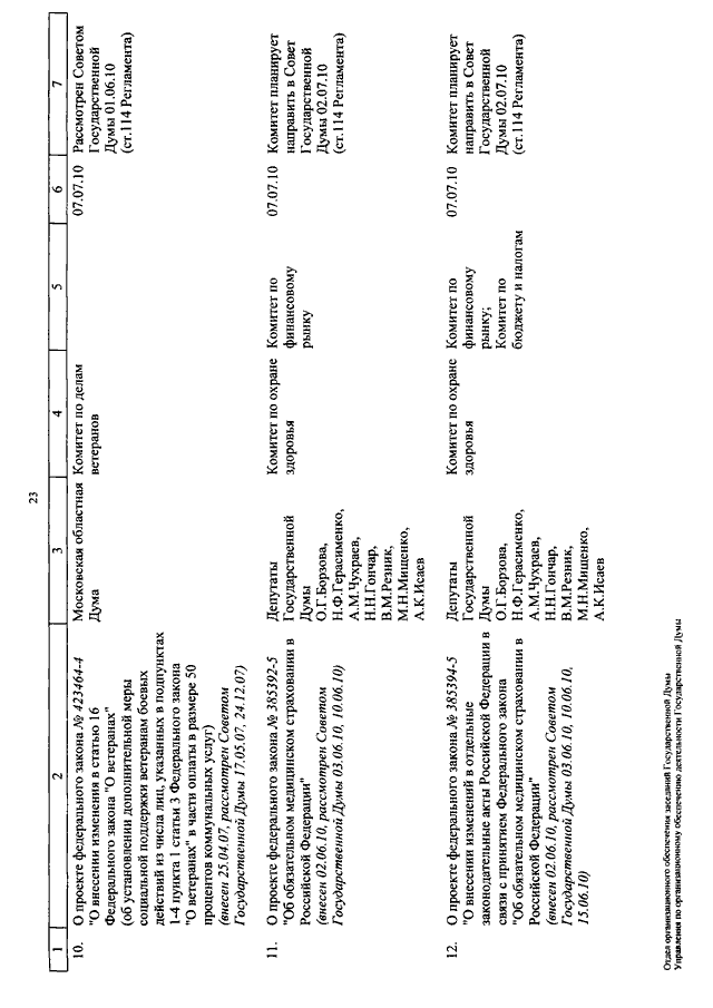 "О КАЛЕНДАРЕ РАССМОТРЕНИЯ ВОПРОСОВ ГОСУДАРСТВЕННОЙ ДУМОЙ С 30 ИЮНЯ ПО 9 ИЮЛЯ 2010 ГОДА"