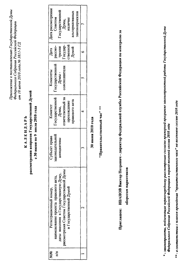 "О КАЛЕНДАРЕ РАССМОТРЕНИЯ ВОПРОСОВ ГОСУДАРСТВЕННОЙ ДУМОЙ С 30 ИЮНЯ ПО 9 ИЮЛЯ 2010 ГОДА"