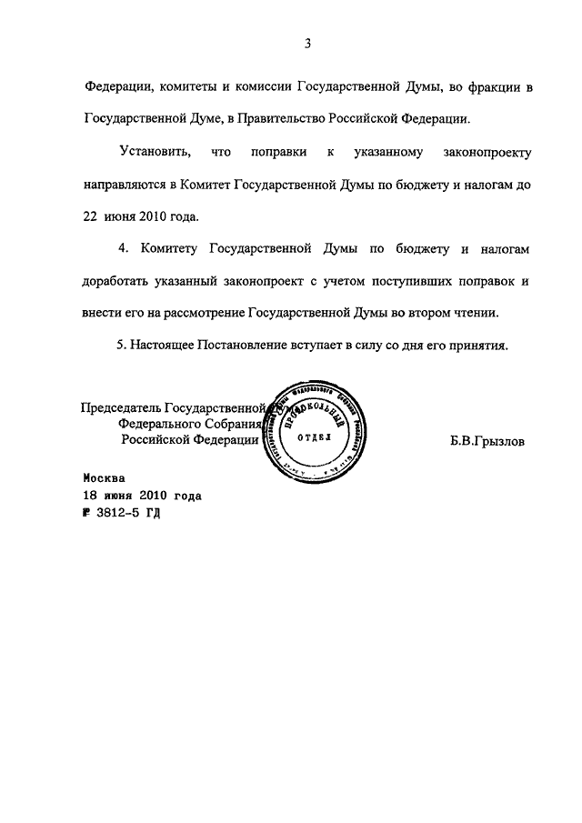 ПОСТАНОВЛЕНИЕ ГД ФС РФ от 18.06.2010 N 3812-5 ГД
