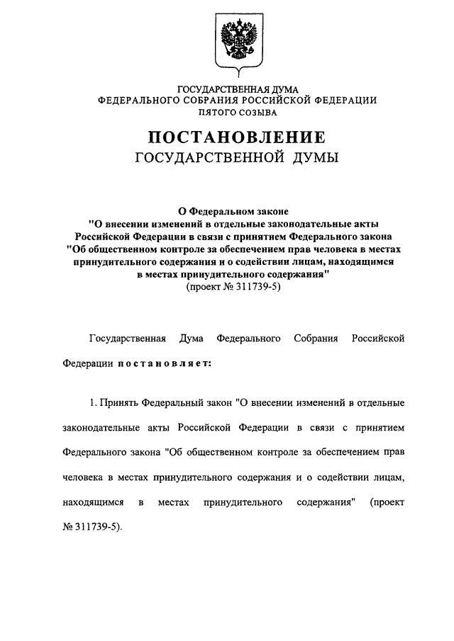 ЗАКОНОДАТЕЛЬНЫЕ АКТЫ РОССИЙСКОЙ ФЕДЕРАЦИИ В СВЯЗИ С ПРИНЯТИЕМ