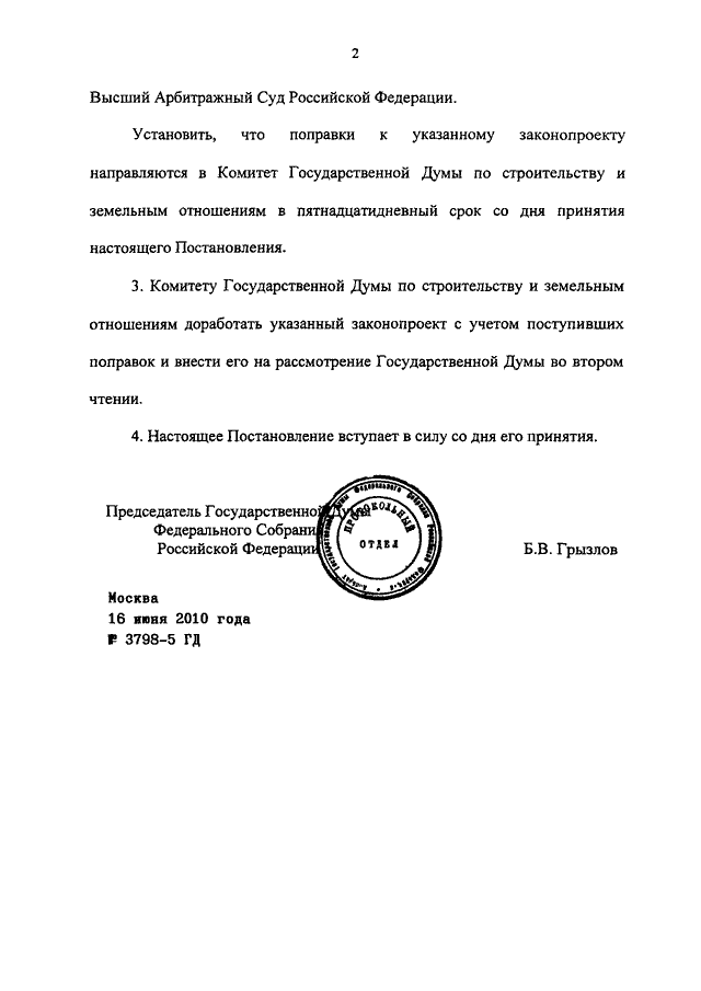 ПОСТАНОВЛЕНИЕ ГД ФС РФ от 16.06.2010 N 3798-5 ГД