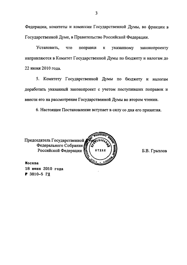 ПОСТАНОВЛЕНИЕ ГД ФС РФ от 18.06.2010 N 3810-5 ГД