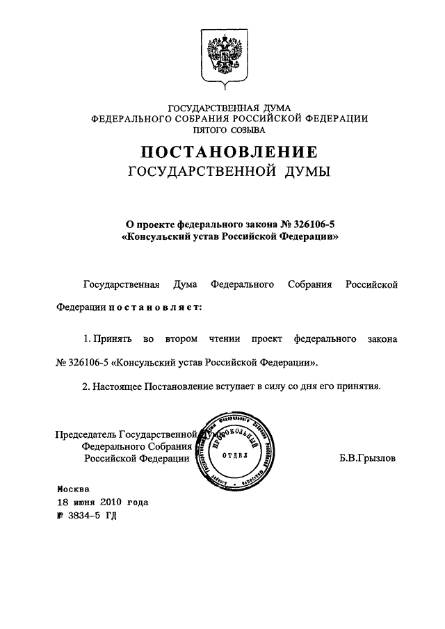 ПОСТАНОВЛЕНИЕ ГД ФС РФ от 18.06.2010 N 3834-5 ГД