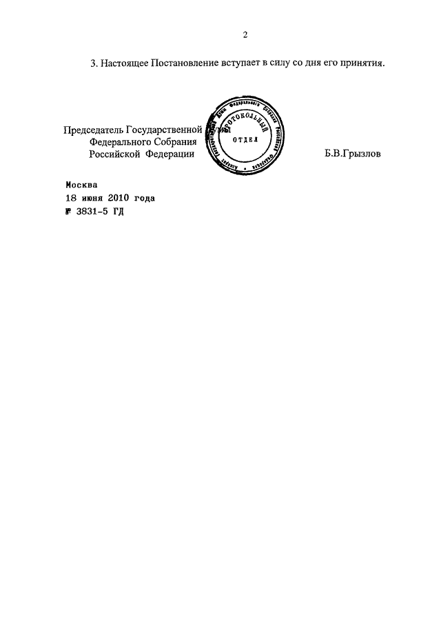 ПОСТАНОВЛЕНИЕ ГД ФС РФ от 18.06.2010 N 3831-5 ГД