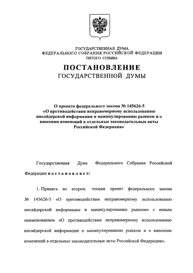 МАНИПУЛИРОВАНИЮ РЫНКОМ И О ВНЕСЕНИИ ИЗМЕНЕНИЙ В ОТДЕЛЬНЫЕ