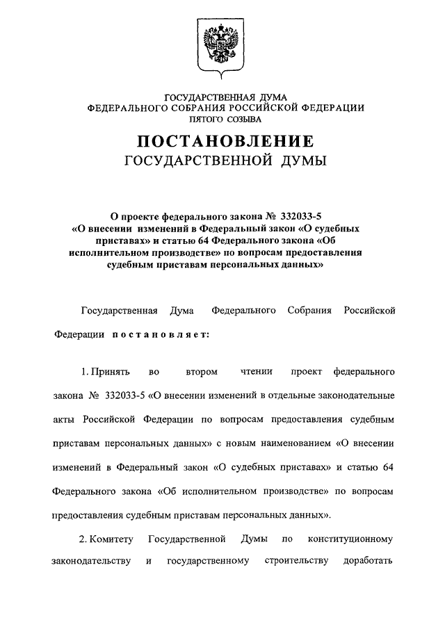 "О ПРОЕКТЕ ФЕДЕРАЛЬНОГО ЗАКОНА N 332033-5 "О ВНЕСЕНИИ ИЗМЕНЕНИЙ В