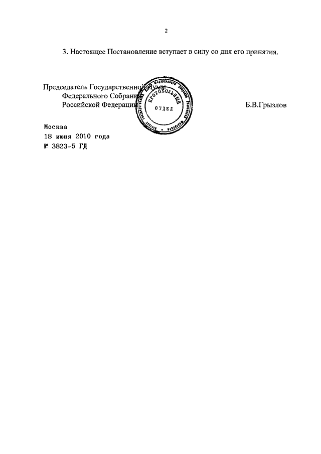 ПОСТАНОВЛЕНИЕ ГД ФС РФ от 18.06.2010 N 3823-5 ГД