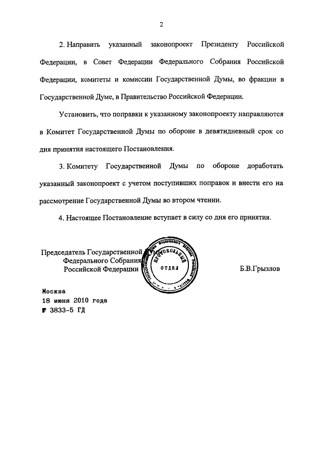 ПОСТАНОВЛЕНИЕ ГД ФС РФ от 18.06.2010 N 3833-5 ГД