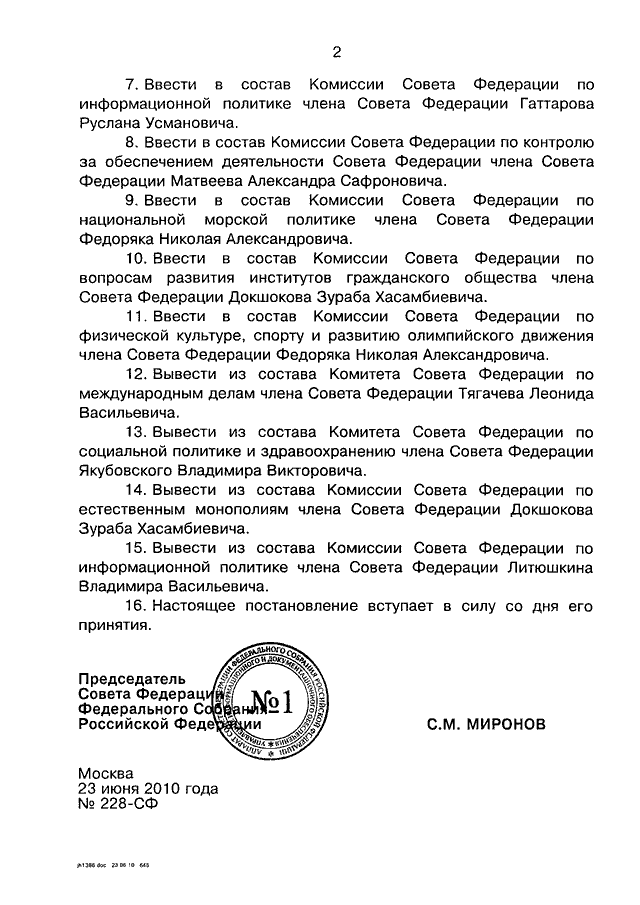 ПОСТАНОВЛЕНИЕ СФ ФС РФ от 23.06.2010 N 228-СФ