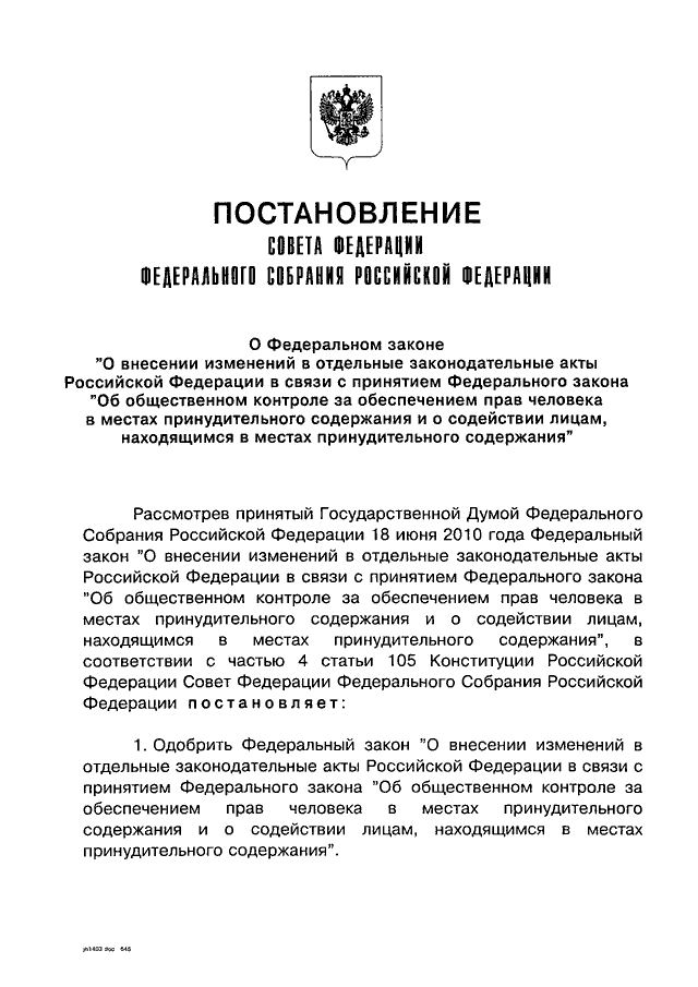 ПОСТАНОВЛЕНИЕ СФ ФС РФ от 23.06.2010 N 253-СФ