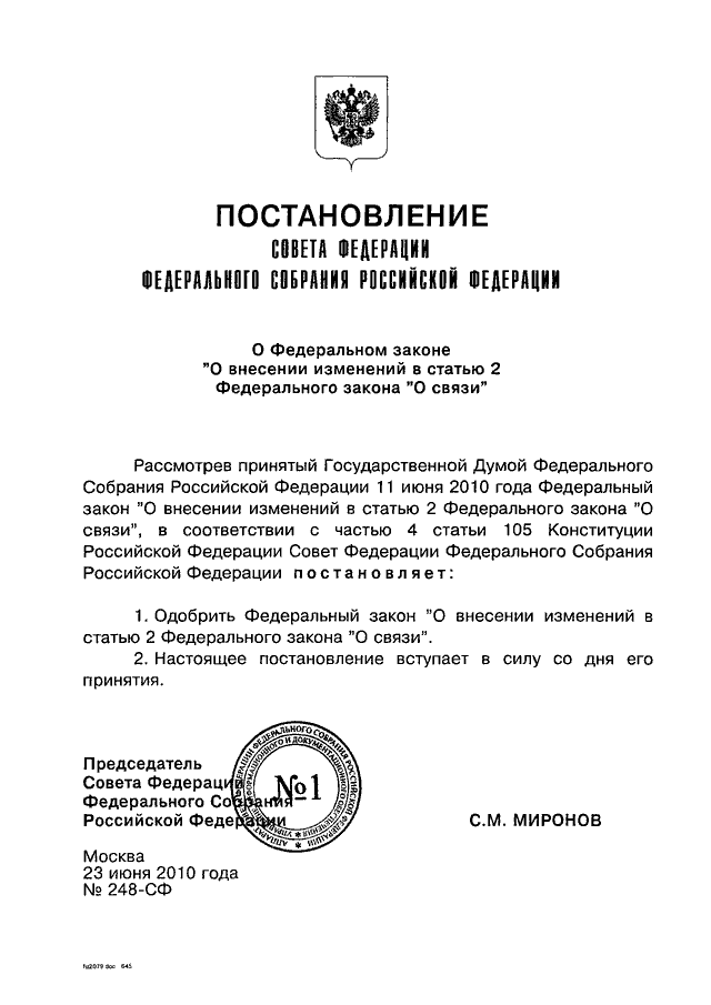 ПОСТАНОВЛЕНИЕ СФ ФС РФ от 23.06.2010 N 248-СФ