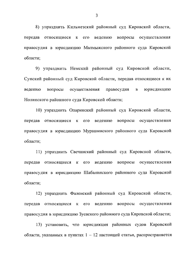 "ОБ УПРАЗДНЕНИИ НЕКОТОРЫХ РАЙОННЫХ СУДОВ КИРОВСКОЙ ОБЛАСТИ"