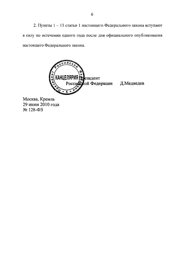 ФЕДЕРАЛЬНЫЙ ЗАКОН от 29.06.2010 N 128-ФЗ