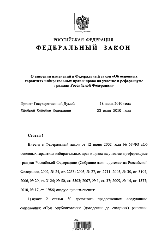 ФЕДЕРАЛЬНЫЙ ЗАКОН от 01.07.2010 N 133-ФЗ