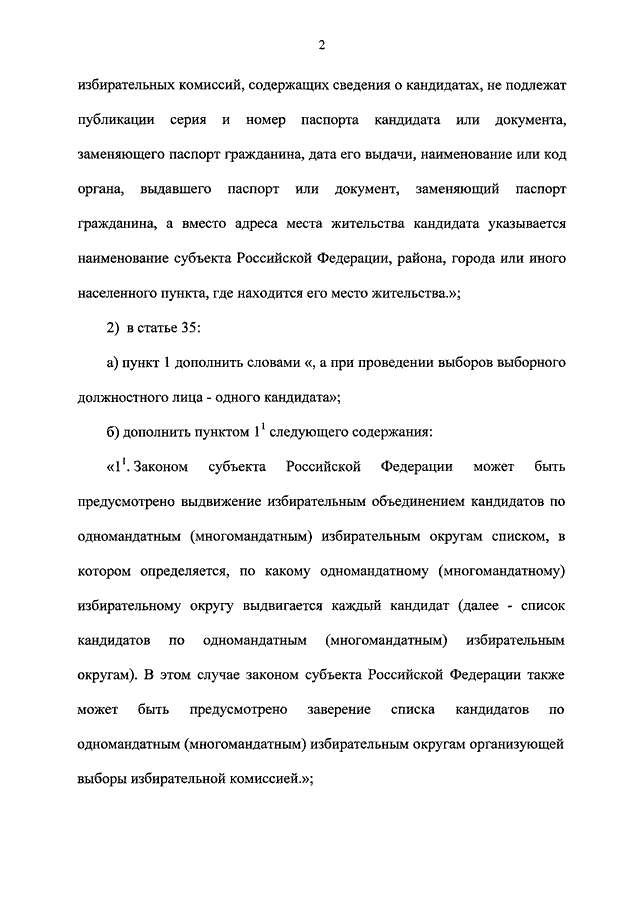 "О ВНЕСЕНИИ ИЗМЕНЕНИЙ В ФЕДЕРАЛЬНЫЙ ЗАКОН "ОБ ОСНОВНЫХ ГАРАНТИЯХ ИЗБИРАТЕЛЬНЫХ ПРАВ И ПРАВА НА УЧАСТИЕ В РЕФЕРЕНДУМЕ ГРАЖДАН РОССИЙСКОЙ ФЕДЕРАЦИИ"