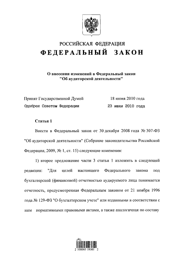 "О ВНЕСЕНИИ ИЗМЕНЕНИЙ В ФЕДЕРАЛЬНЫЙ ЗАКОН "ОБ АУДИТОРСКОЙ ДЕЯТЕЛЬНОСТИ"