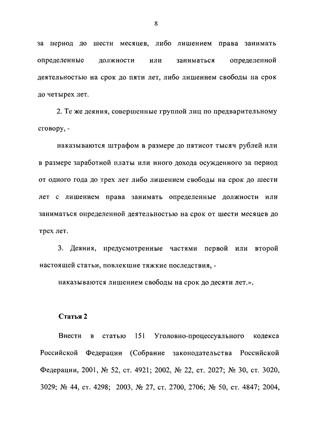"О ВНЕСЕНИИ ИЗМЕНЕНИЙ В УГОЛОВНЫЙ КОДЕКС РОССИЙСКОЙ ФЕДЕРАЦИИ И В СТАТЬЮ 151 УГОЛОВНО - ПРОЦЕССУАЛЬНОГО КОДЕКСА РОССИЙСКОЙ ФЕДЕРАЦИИ"