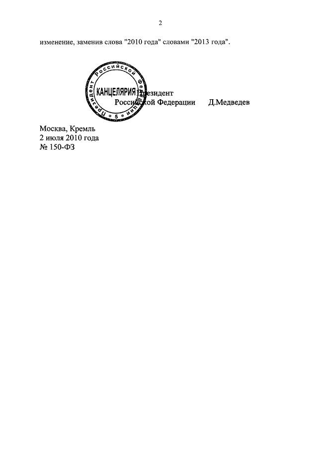 ФЕДЕРАЛЬНЫЙ ЗАКОН от 02.07.2010 N 150-ФЗ