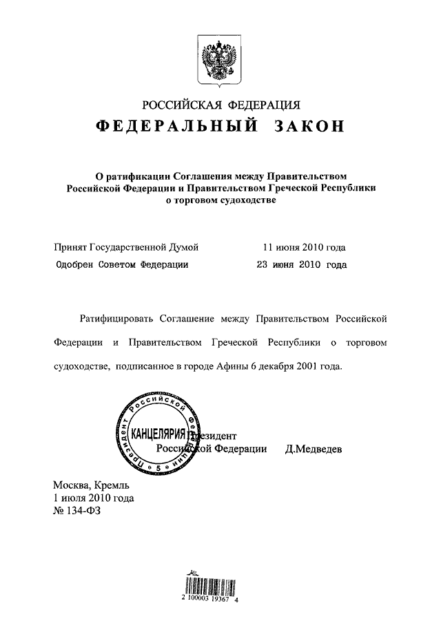 ФЕДЕРАЛЬНЫЙ ЗАКОН от 01.07.2010 N 134-ФЗ