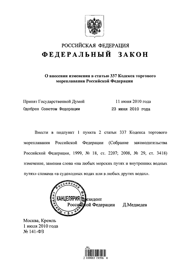 ФЕДЕРАЛЬНЫЙ ЗАКОН от 01.07.2010 N 141-ФЗ