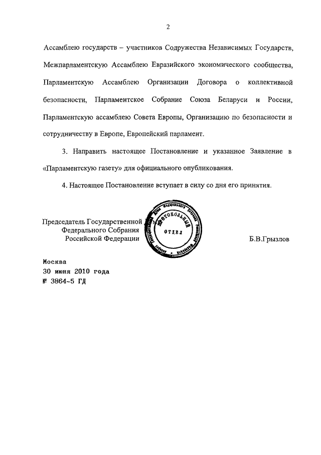 ПОСТАНОВЛЕНИЕ ГД ФС РФ от 30.06.2010 N 3864-5 ГД