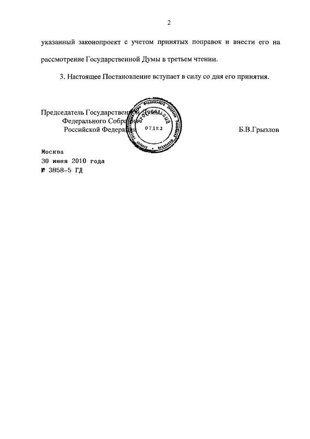 ПОСТАНОВЛЕНИЕ ГД ФС РФ от 30.06.2010 N 3858-5 ГД