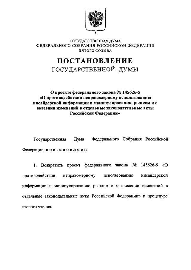 "О ПРОЕКТЕ ФЕДЕРАЛЬНОГО ЗАКОНА N 145626-5 "О ПРОТИВОДЕЙСТВИИ