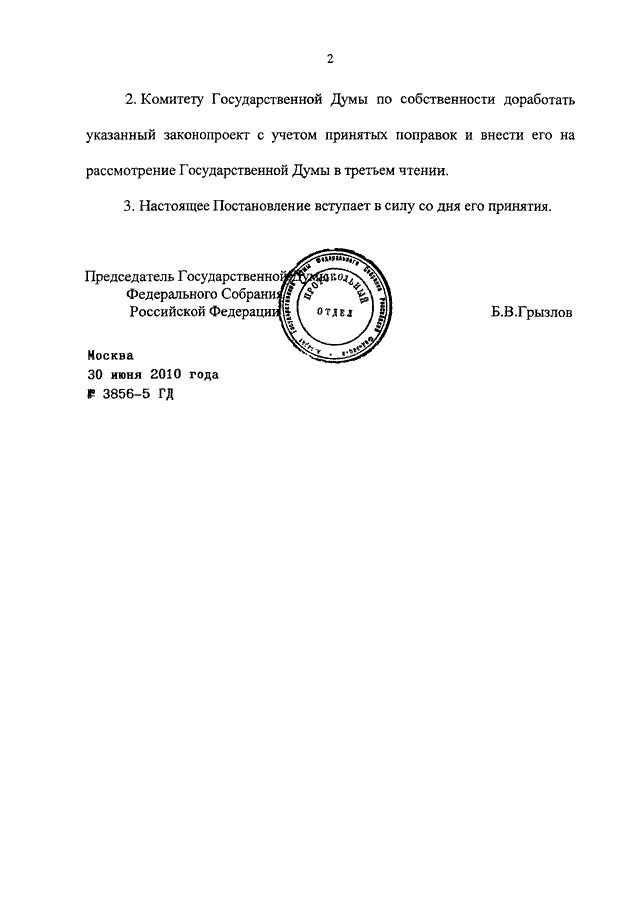 ПОСТАНОВЛЕНИЕ ГД ФС РФ от 30.06.2010 N 3856-5 ГД