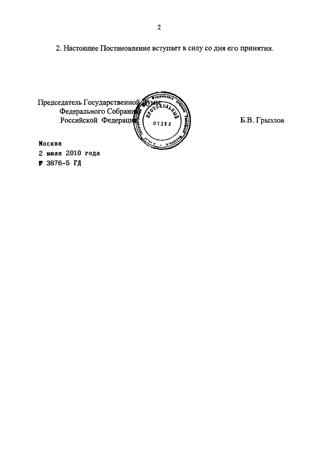 ПОСТАНОВЛЕНИЕ ГД ФС РФ от 02.07.2010 N 3876-5 ГД