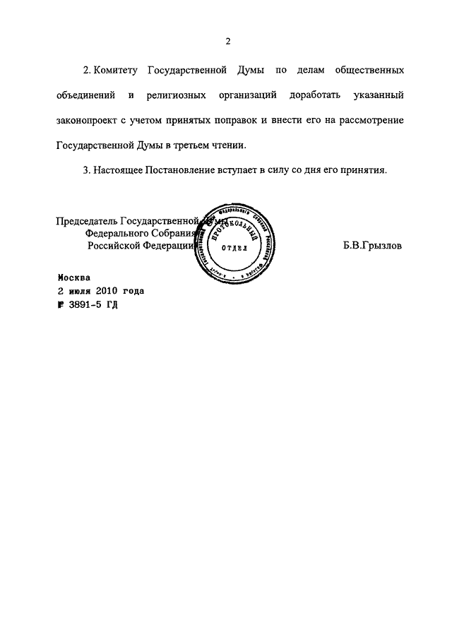ПОСТАНОВЛЕНИЕ ГД ФС РФ от 02.07.2010 N 3891-5 ГД