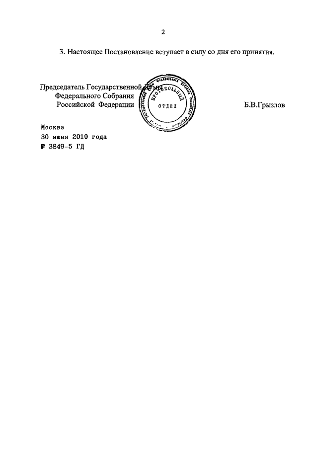 ПОСТАНОВЛЕНИЕ ГД ФС РФ от 30.06.2010 N 3849-5 ГД