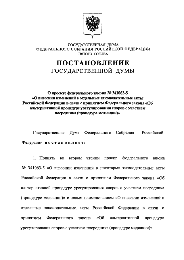 ПРИНЯТИЕМ ФЕДЕРАЛЬНОГО ЗАКОНА "ОБ АЛЬТЕРНАТИВНОЙ ПРОЦЕДУРЕ