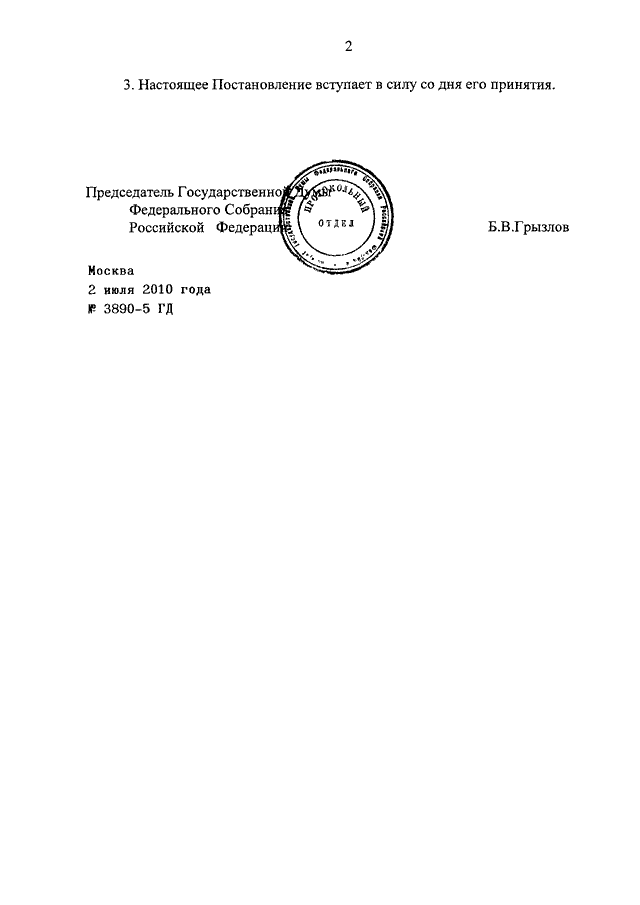 ПОСТАНОВЛЕНИЕ ГД ФС РФ от 02.07.2010 N 3890-5 ГД