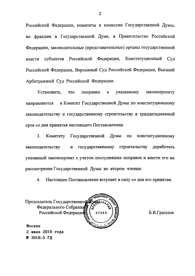 ПОСТАНОВЛЕНИЕ ГД ФС РФ от 02.07.2010 N 3918-5 ГД